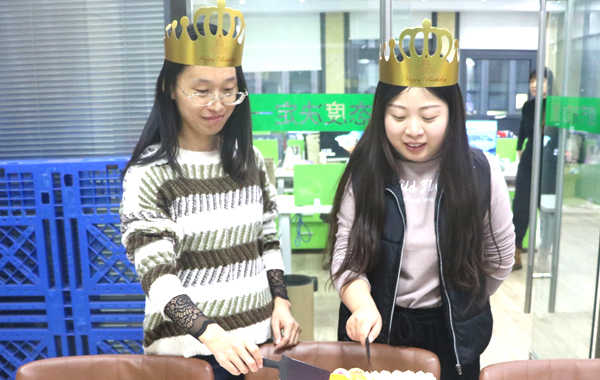 公司会每月为过生日的员工准备生日红包和蛋糕共同庆祝,虽然每次时间不同、参加的人员偶尔有不同,但公司对员工的这份关心和关爱是一样的。由张总为她们颁发生日红包。