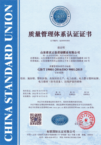 ISO9001认证证书
