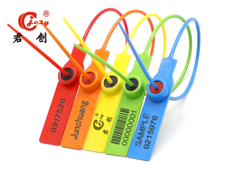 采用改性PP料注塑成型,锁芯里部放置弹簧钢片、再通过焊接而成。字为烫印或激光标刻、 公司标志或名称、流水编码、条形码等,一拉紧型、易施封、易安装,锁后可用钢丝剪移除。